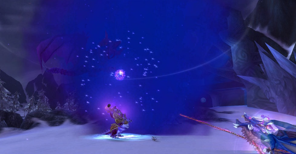 Это было несложно. Но на пути возникла стена - препятствие, которое в одиночку не преодолеть. особенно если ты - аркан маг 85 уровня :)) Таресгоса стала извергать пламя, пытаясь разрушить стену (сразу вспомнились походы в Залы Отражений и побег от Короля-Лича с Сильваной), а я должна была опять защищать её (драконы, извергающие пламя, оказывается, крайне нестабильны и хрупки, запомнить бы надо, а то бой с Дезвингом не за горами :))